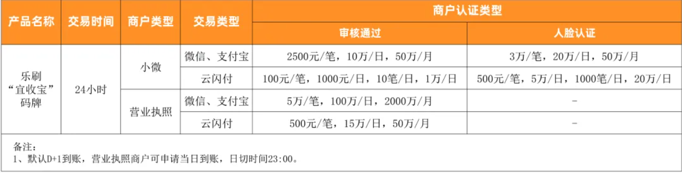 - (2)营业执照商户:默认 D+1 到账(可开通当日到账功能)。